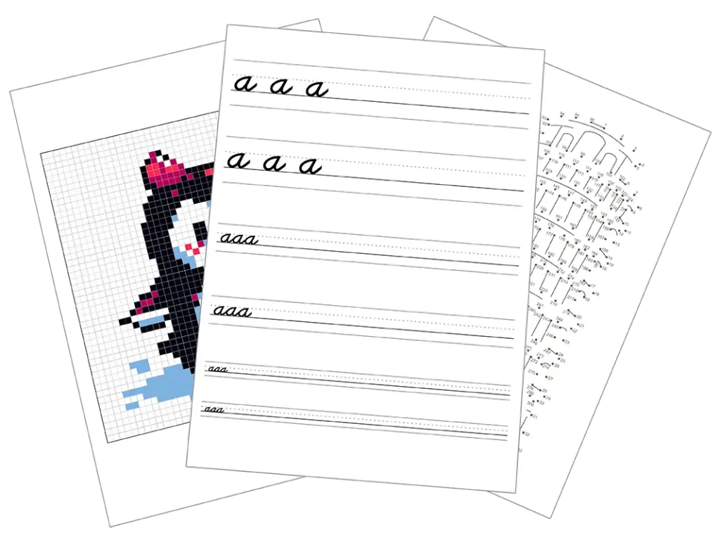 The handwriting worksheets for kids are available in many fonts, both cursive and manuscript, in an easy-to-print PDF format