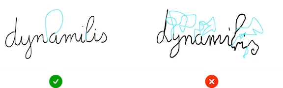 The shorter the ‘air time’ and the fewer movements that occur during that time, the more automated the handwriting becomes. The flow of writing is interrupted when the pen is in the air for too long.